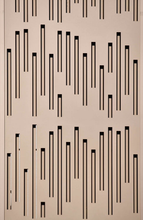 Die hofseitigen Balkonschicht bedeckt die gesamte Südseite. Gelaserten Schiebeläden in warmgrauem alu eloxiert, setzen einen Kontrapunkt zur monotonen schlichten Fassade.