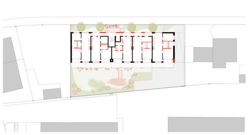 Die traditionell geschnittenen 3-Zimmer-Wohnungen erhalten neu offene loftartige Wohnräume. Im obersten neuen Vollgeschoss entwickeln sich die Räume um den wohnungseigenen Innenhof.